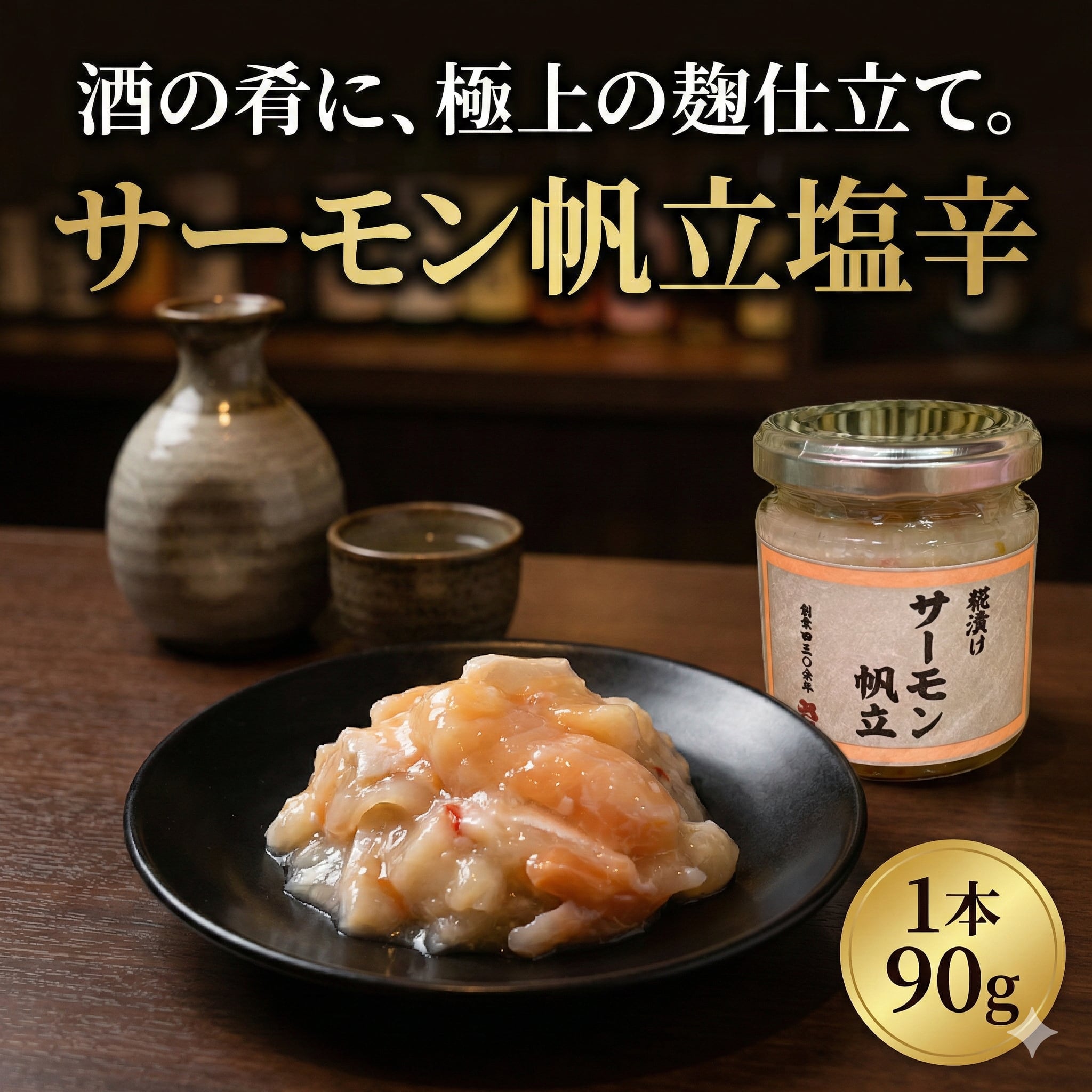 サーモン帆立【麹漬け】【ご飯のお供、お酒のおつまみ】【1本 90g】