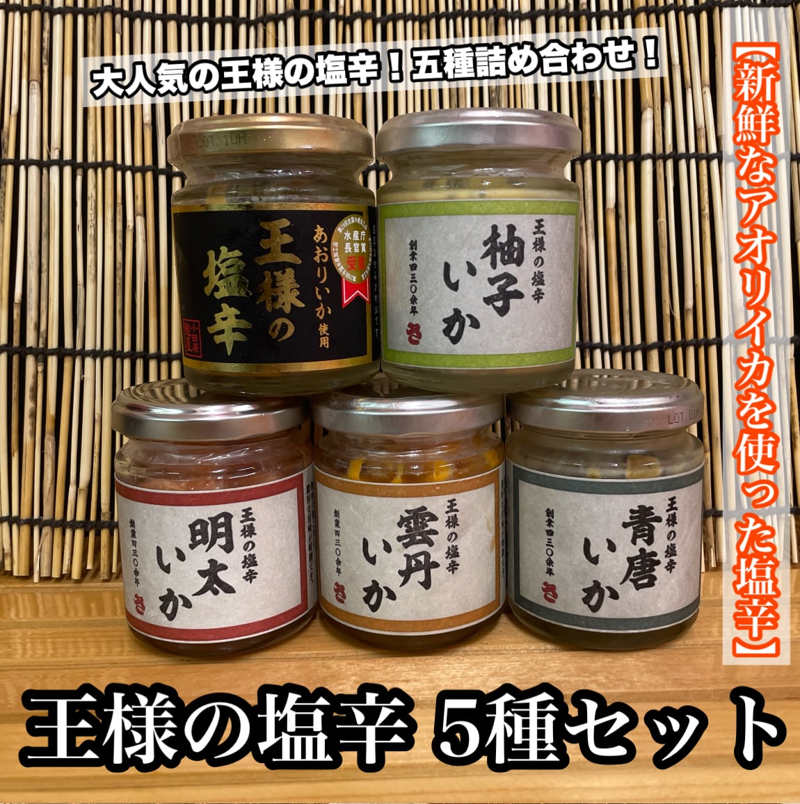 人気の王様の塩辛 5種セットです。