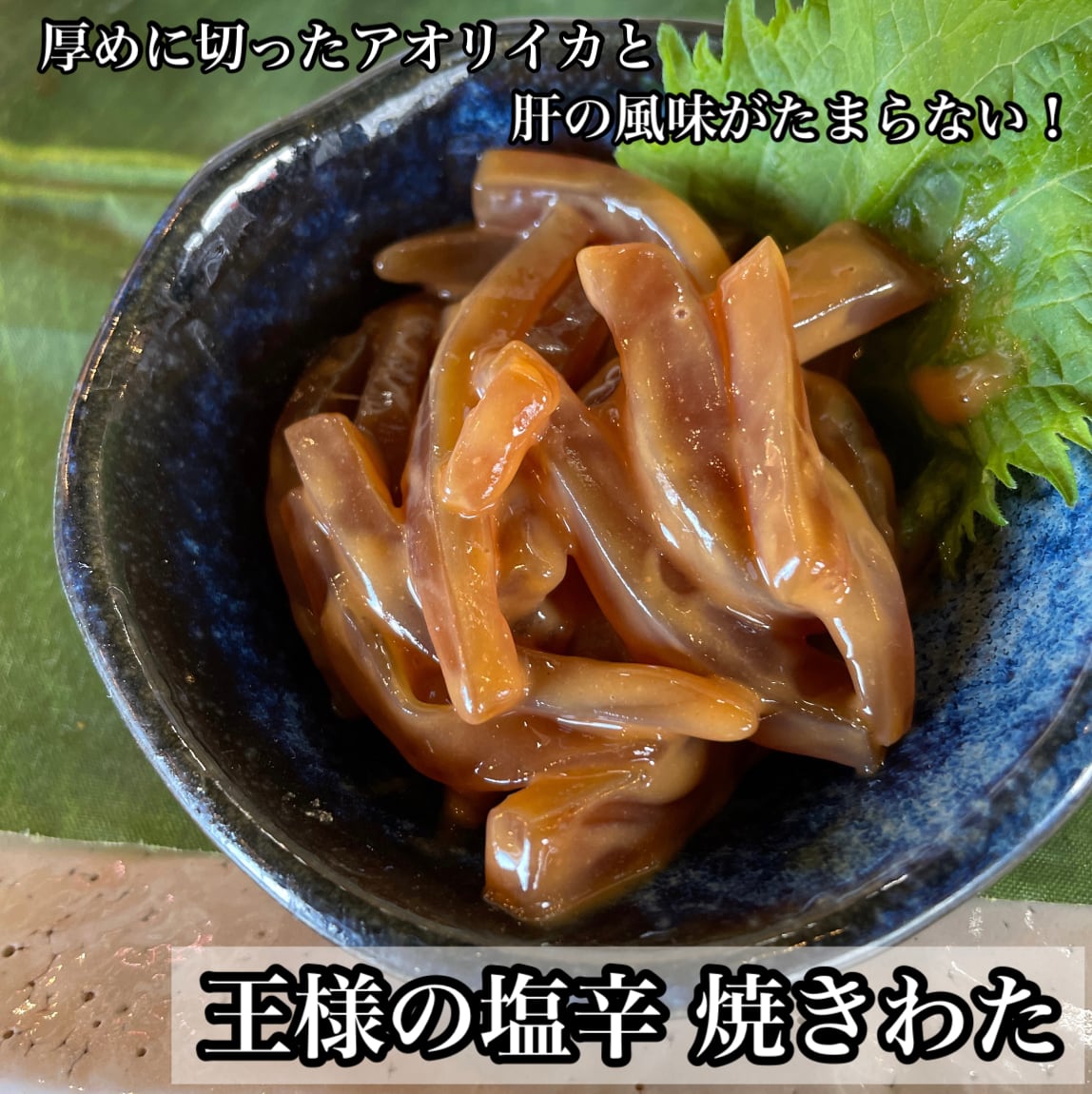 肉厚なアオリイカの甘みと焼きわたの香ばしさが抜群な美味しさ