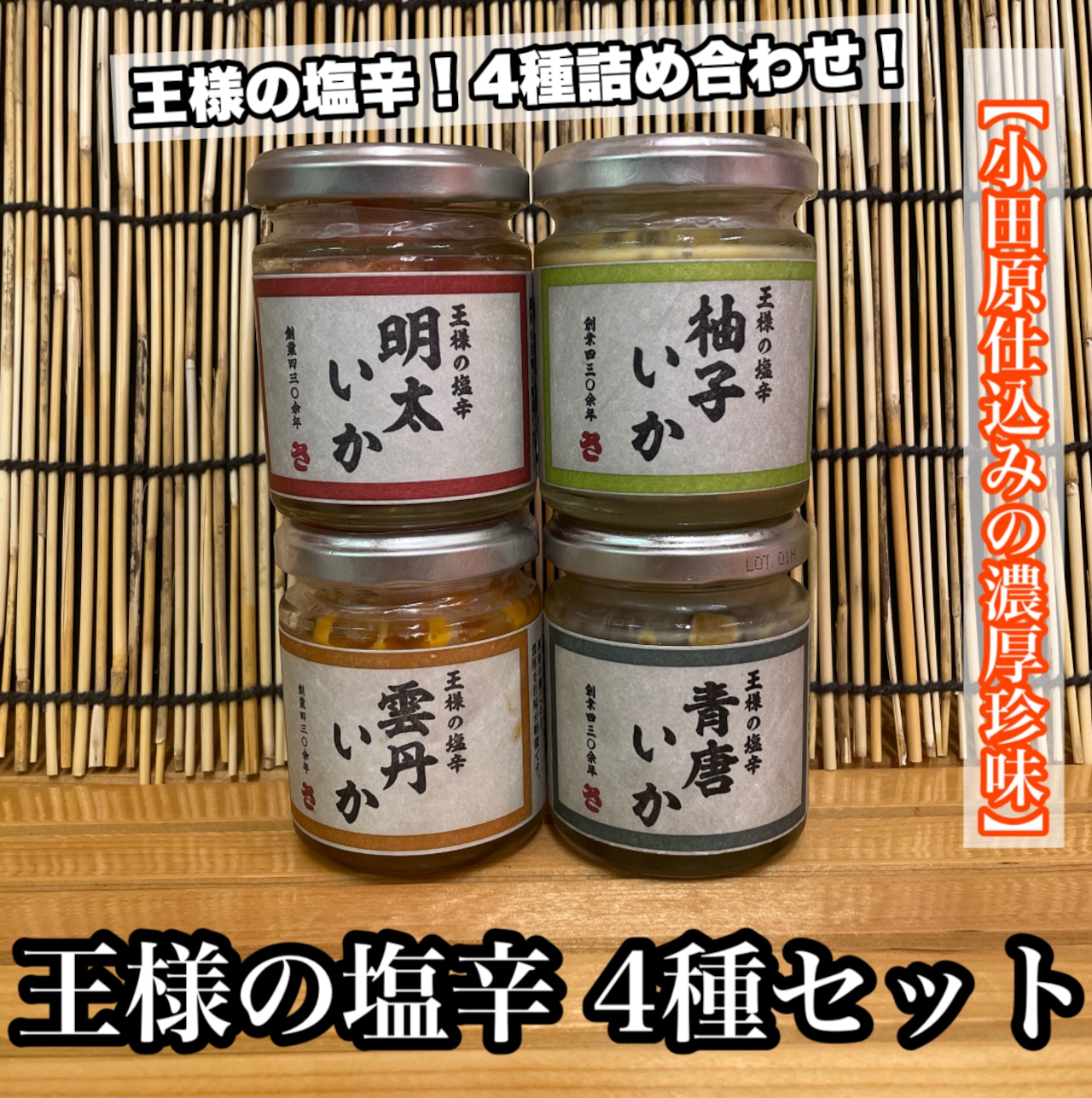 王様の塩辛 変わり種 4種 各1本【ゆず 明太子 雲丹 青唐】