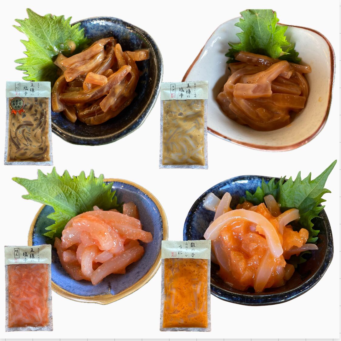 人気の王様の塩辛 4種セットです。