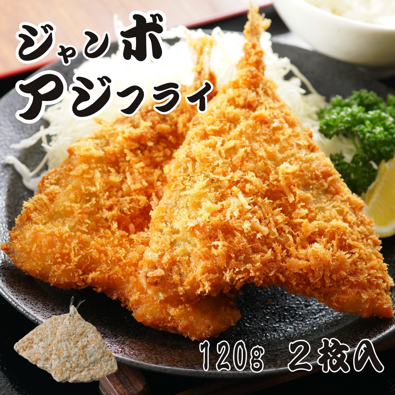 120gの特大サイズで食べごたえ抜群のジャンボアジフライ。