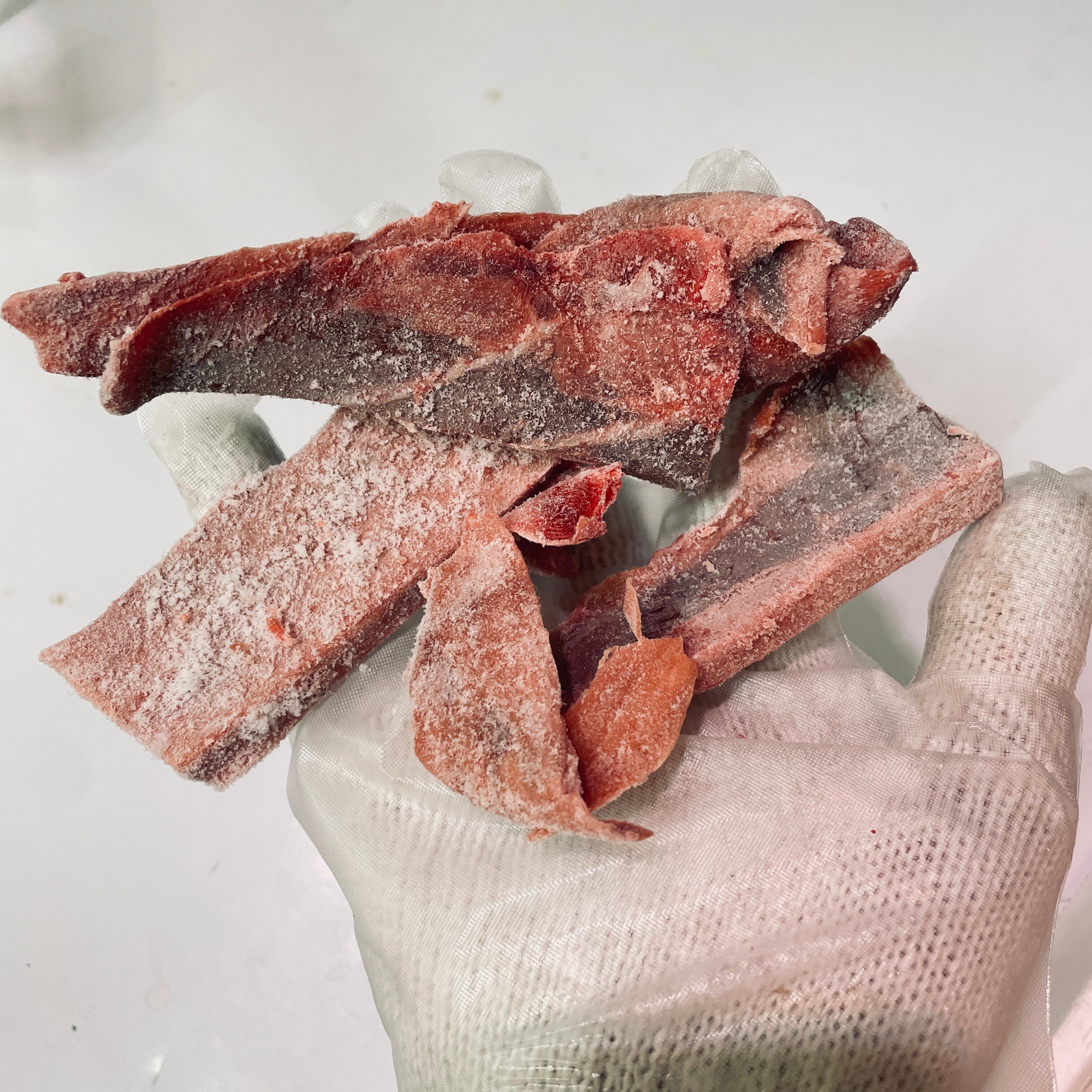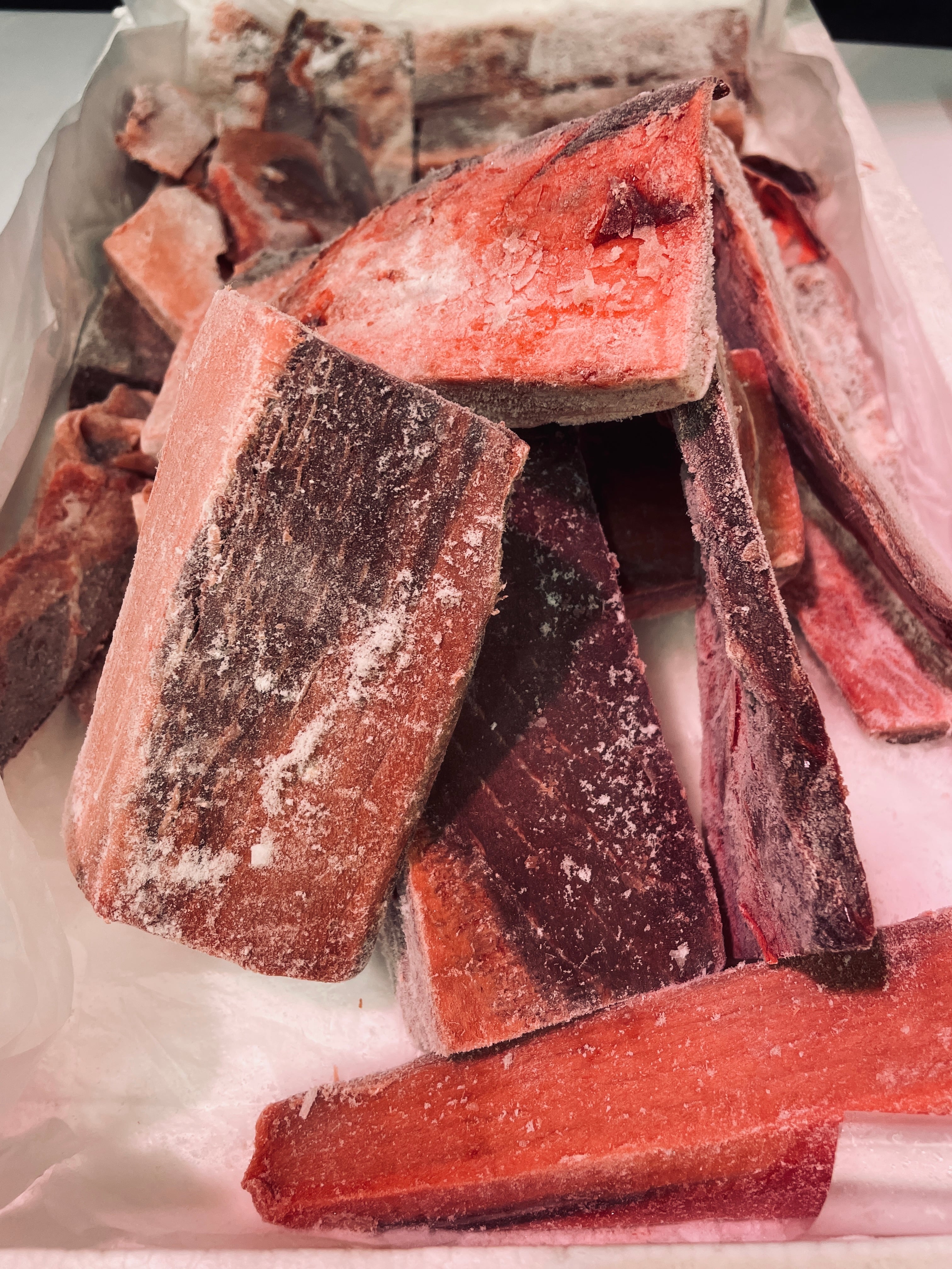解凍後、水につけ、よく洗って血抜きをすると血生臭さが抜けて美味しく食べやすいです。