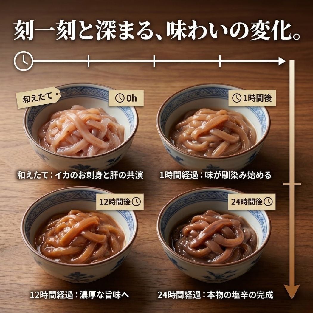 そこから時間が経つにつれて、味わいは少しずつ塩辛らしく変化していきます。
