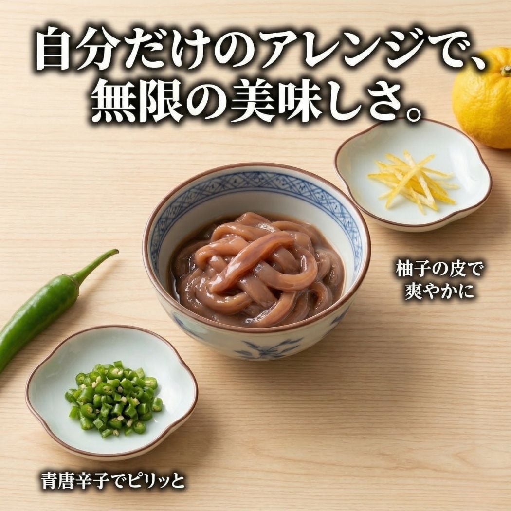 そのまま食べるのはもちろん、お好みで柚子の皮を加えて爽やかに仕上げたり、青唐辛子や七味を加えてピリッとした味わいにしたりと、アレンジも楽しめます。自分好みの味に仕上げられるのも手作りセットならではの魅力です。ごはんのお供としてはもちろん、お酒のおつまみにもよく合います。